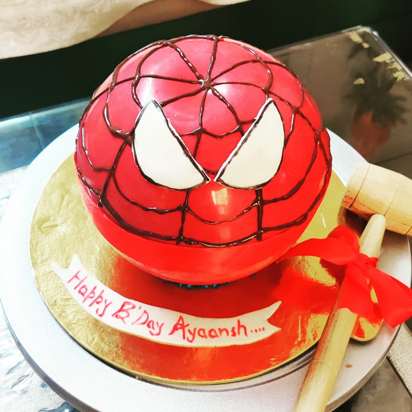 ✅ Spidey-Themed Design! – Red & blue fondant, web effects, and Spiderman’s mask 🕸️🎭